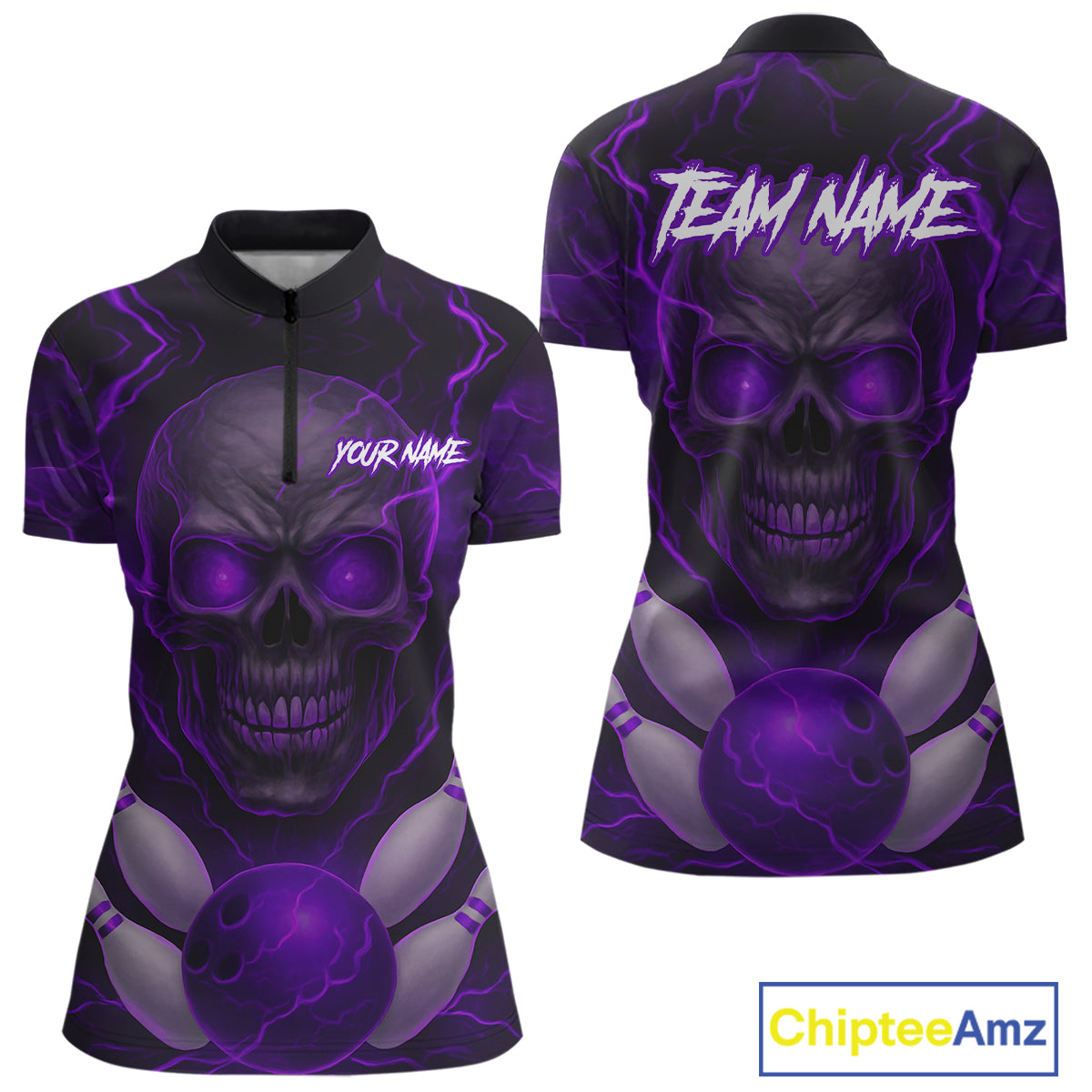 Purple Bowling Shirts for Team Women Men Custom Skull Bowling Jerseys for Couples MBL207