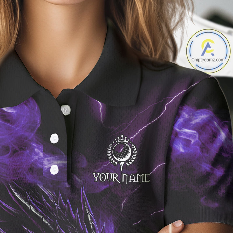 Purple Flame Dragon Women Golf polo shirts Custom Dragon team ladies golf outfit, gift for golf lover NQS10792