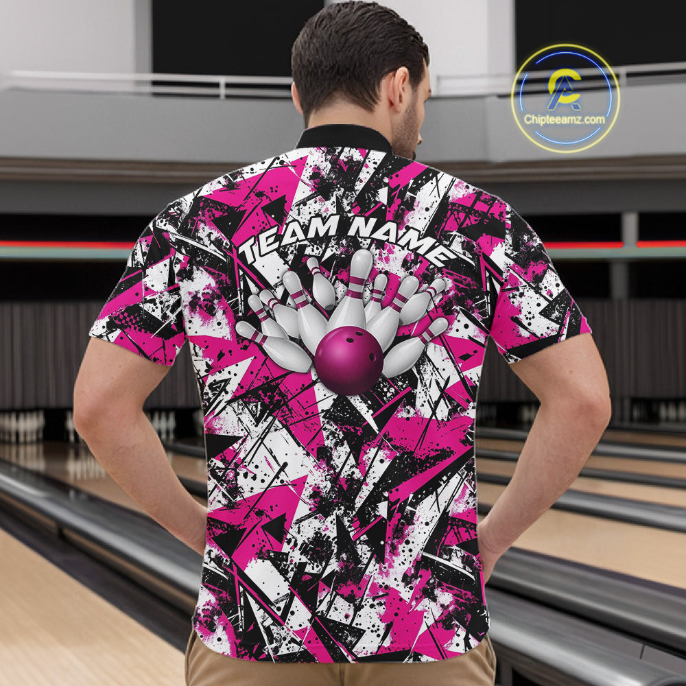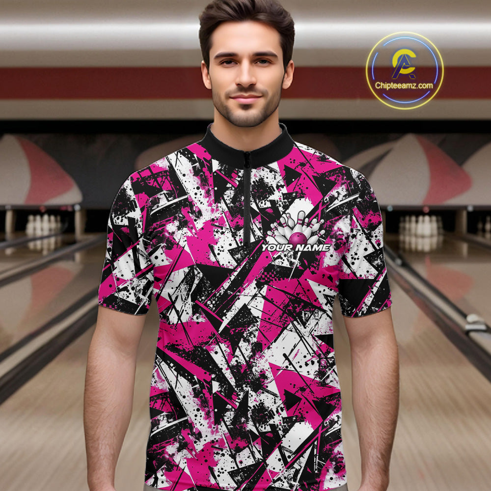 Custom Graffity Pink Camo Bowling Team Men Quarter-Zip Shirts, Camouflage Bowling Jerseys IPHW10214