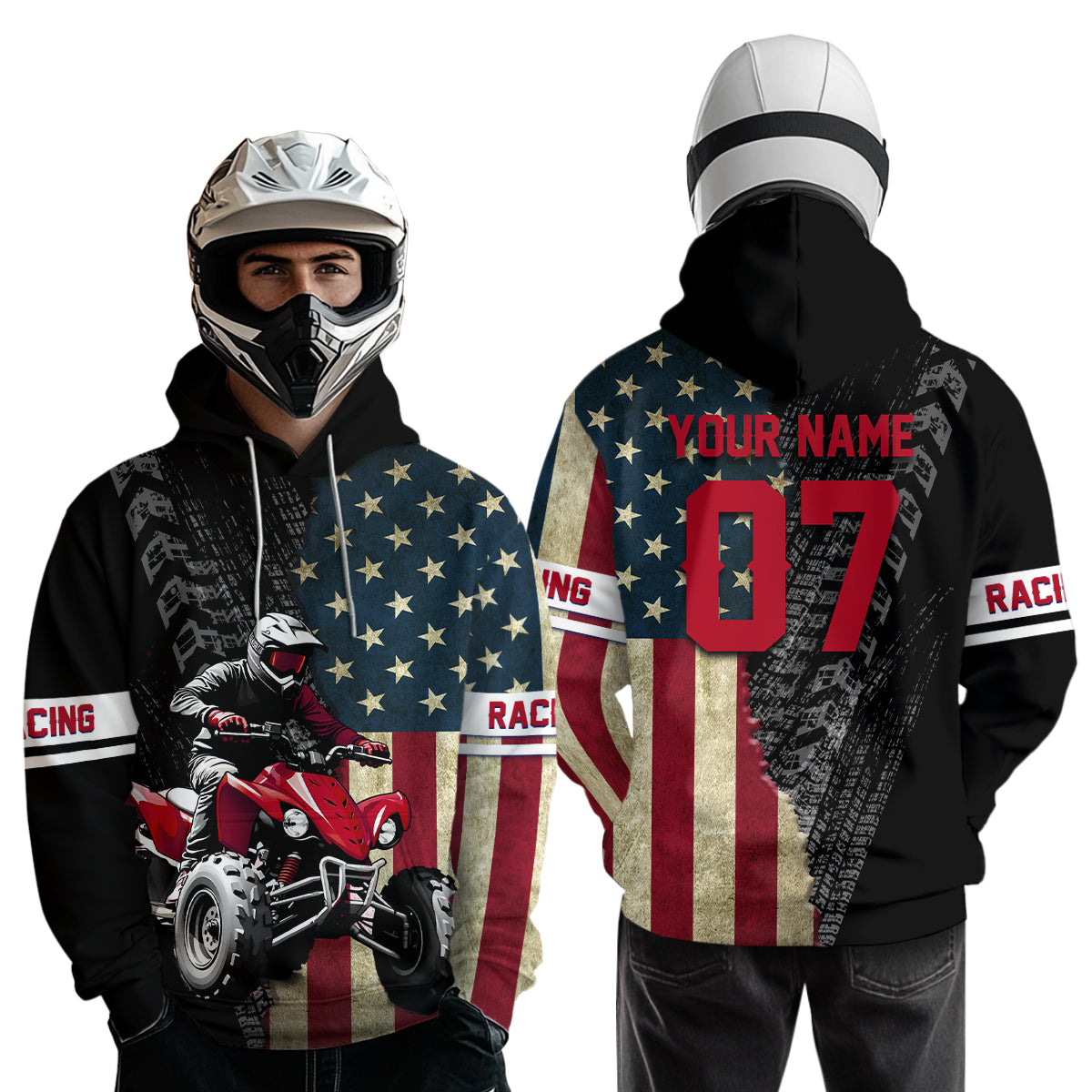 Usa Flag Quad Bike Hoodie For Adult&Kid Atv Motocross Hooded Jersey Patriotic Off-Road Extreme Quad Shirt NHN005
