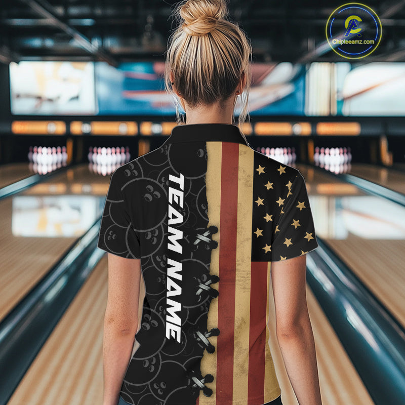 Vintage American Flag Black Bowling Camo Retro Bowling shirts for Women Custom Team bowling jersey NQS10584