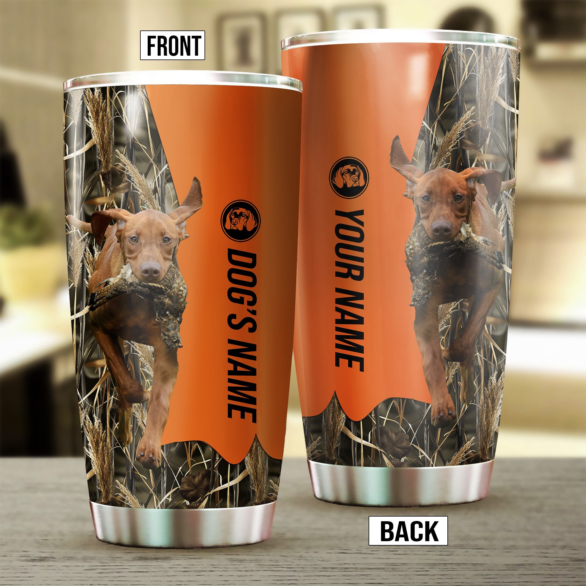 Vizsla Birds & Deer shed Hunting Dog Custom name Stainless Steel Tumbler Cup FSD4297
