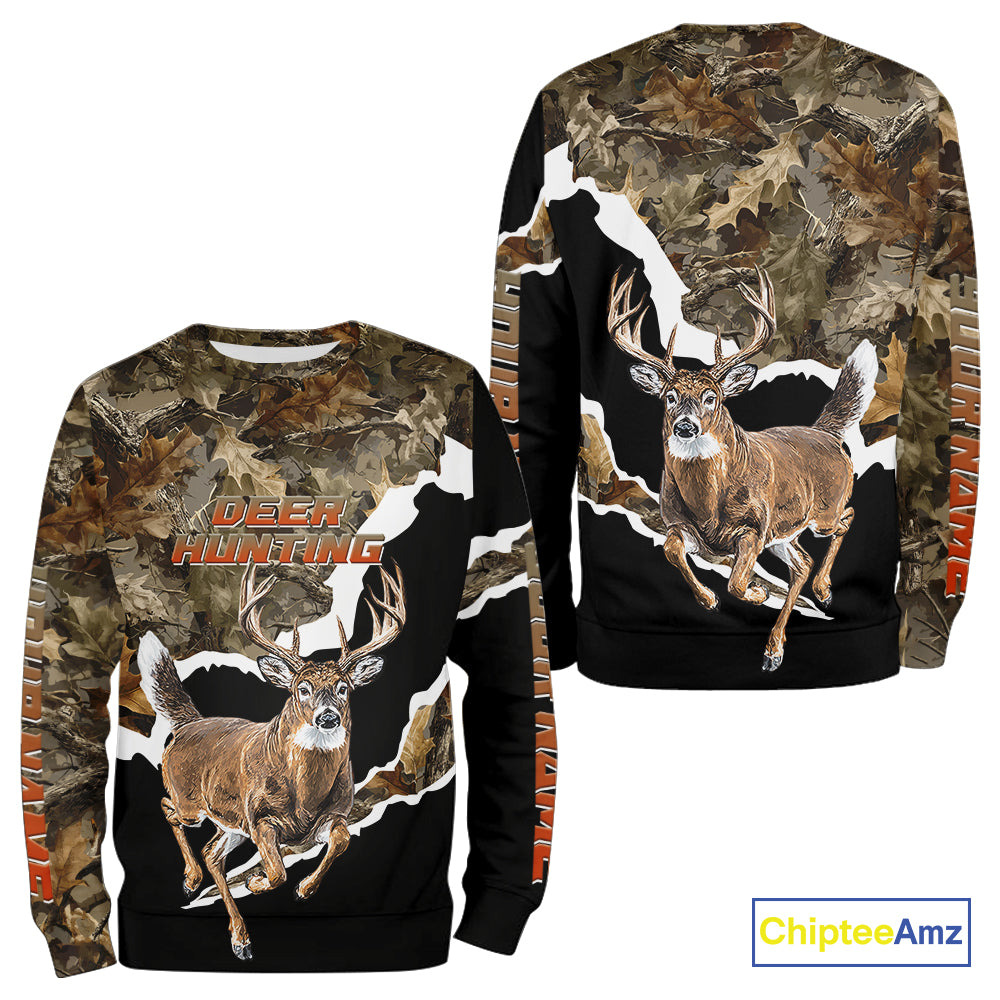 Whitetail Deer Camo Customize Name 3D Printed Long Sleeve Hoodie Hunting Shirts for Men NBT303