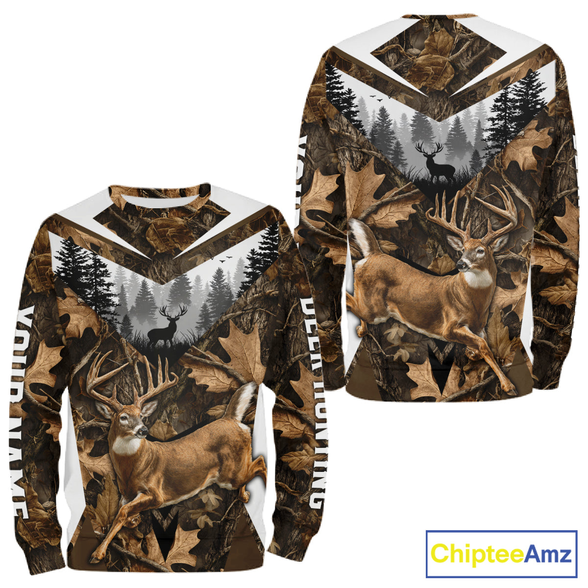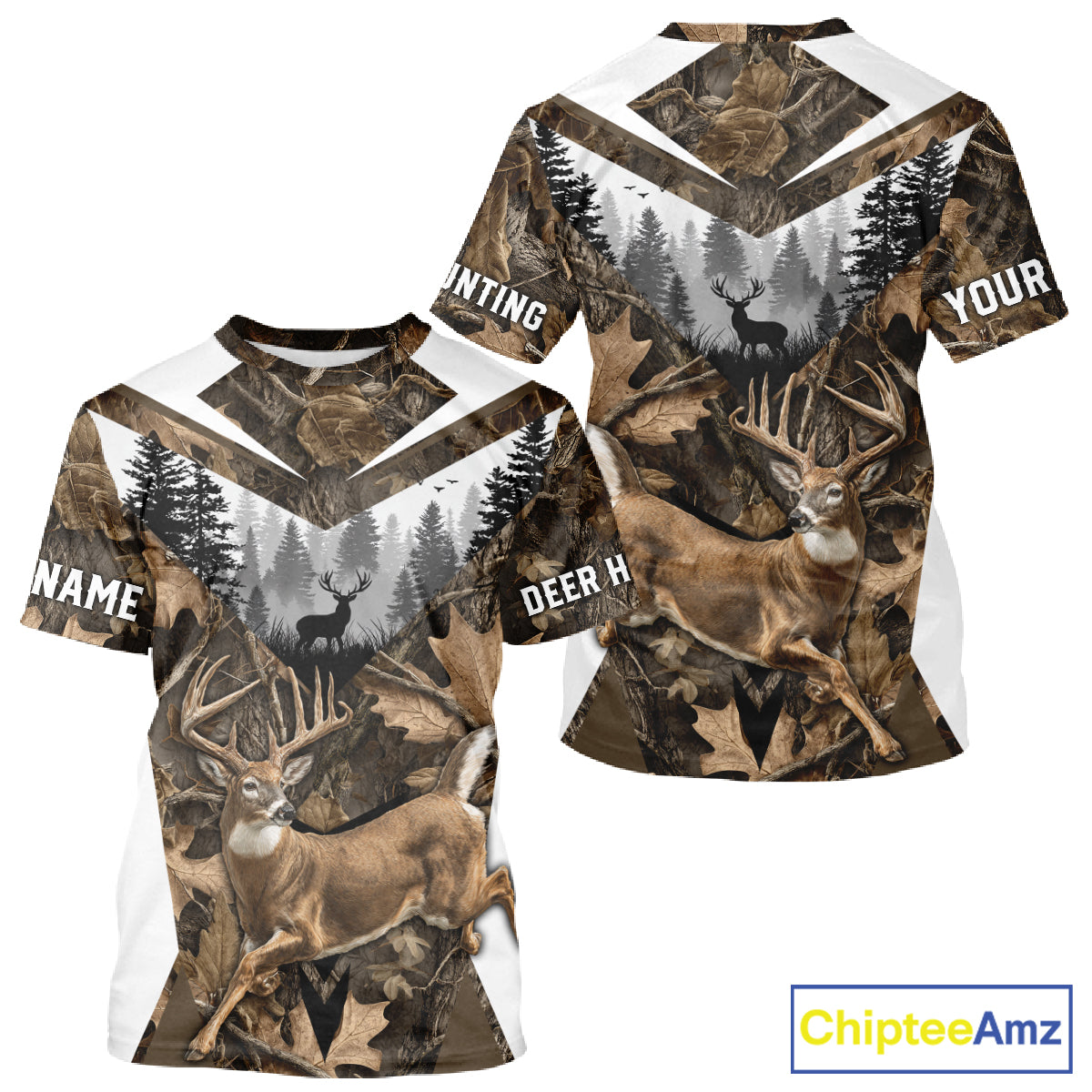 Whitetail Deer Hunting Custom Name Camo Shirt, Deer Hunting Shirt NHT332