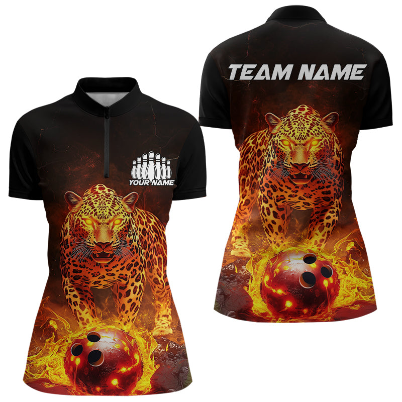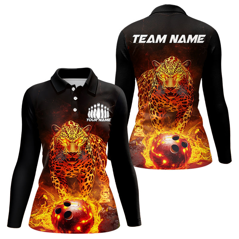 Custom Flaming Leopard Bowling Shirts For Women, Fire Bowling Team Shirt Bowler Uniform IPHW8000