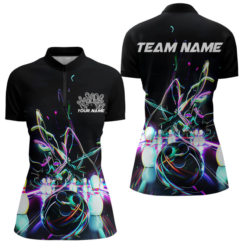 Neon Style Custom Ladies Bowling Shirts, Glowing Electric Bowling Team Shirt Bowler Outfits IPHW8001