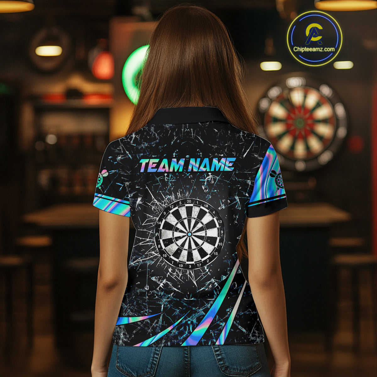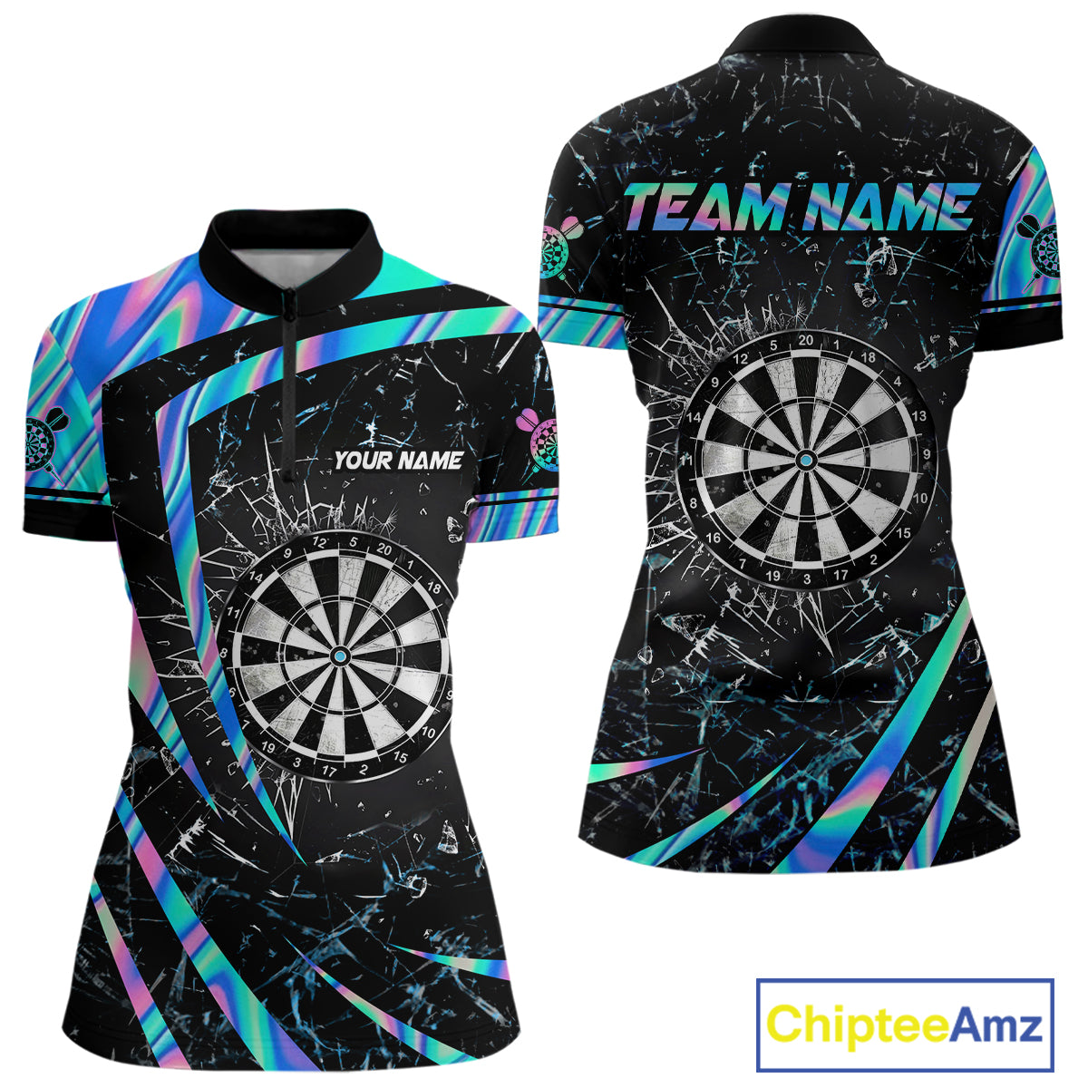 Personalized Holographic Glass Break Darts Shirt For Women Custom Darts Jersey Team Polo & 1/4 Zip TDM5413