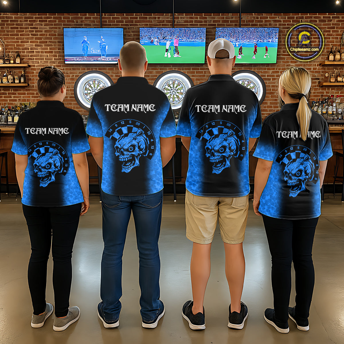 Black And Blue Custom Skull Darts Shirt For Women, Darts Jersey Pocket Option TDM5439
