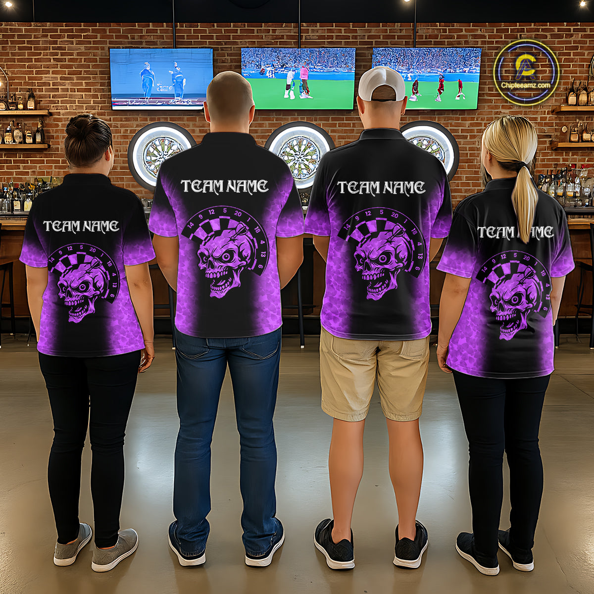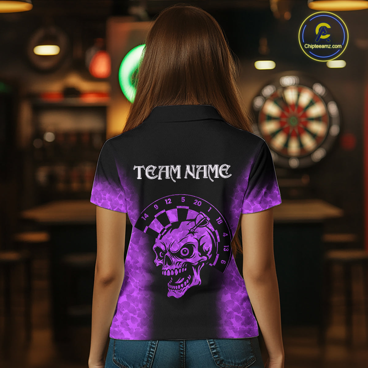 Black And Purple Custom Skull Darts Shirt For Women, Darts Jersey Pocket Option TDM5440