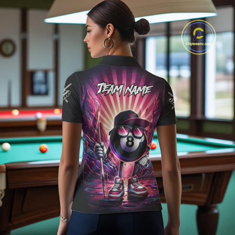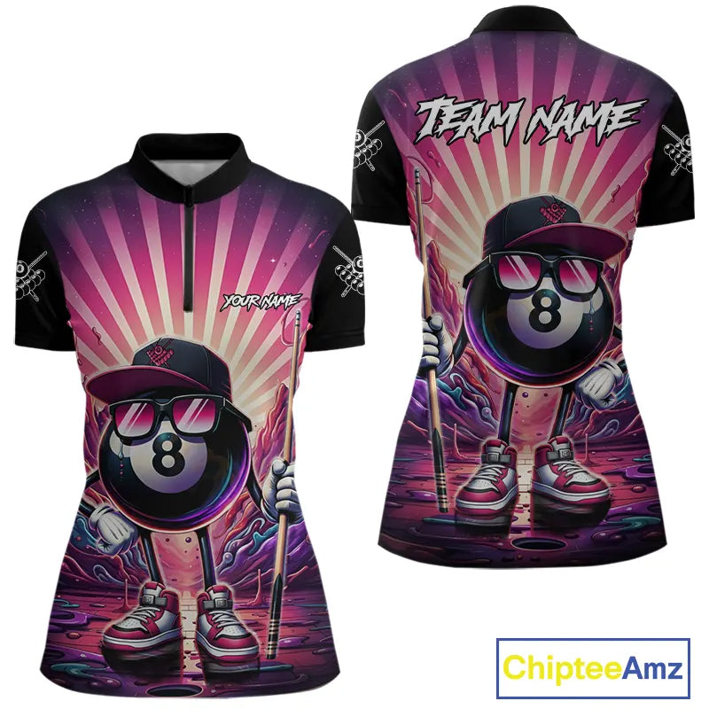 Funny 8 Ball Pool Neon Graffiti Billiard Shirt For Women Custom Billiard Jersey Team Polo & 1/4 Zip TDM5443