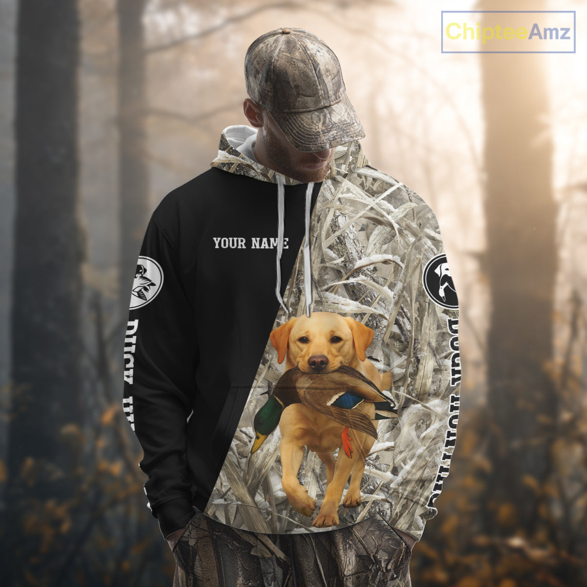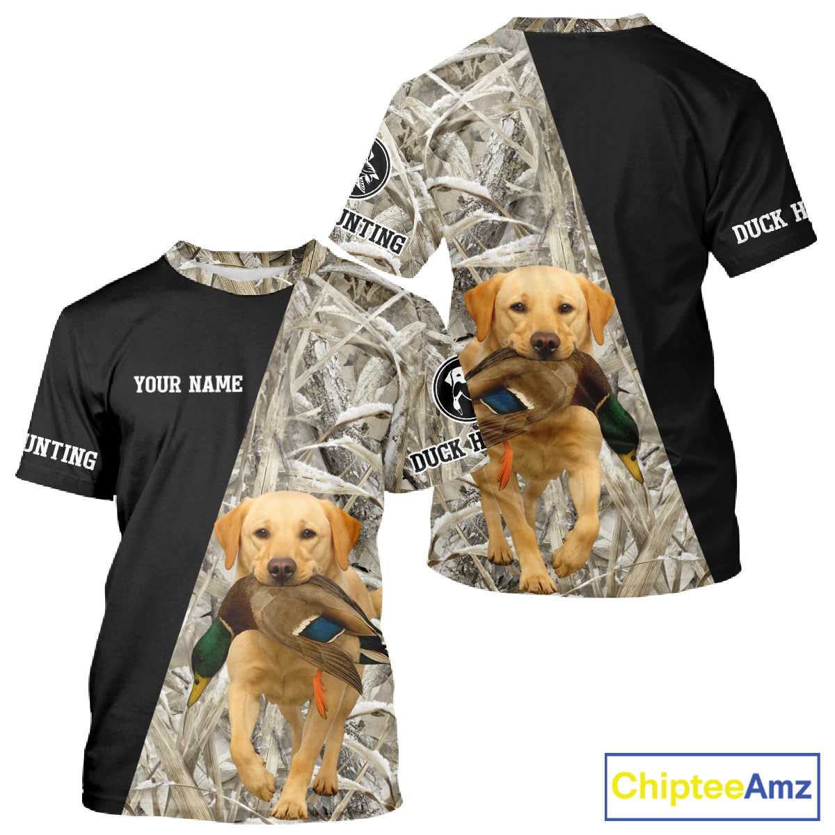 Yellow Lab Duck Hunting Shirt, Custom Name 3D Black Camo Winter Waterfowl Hunting Gear NHT233