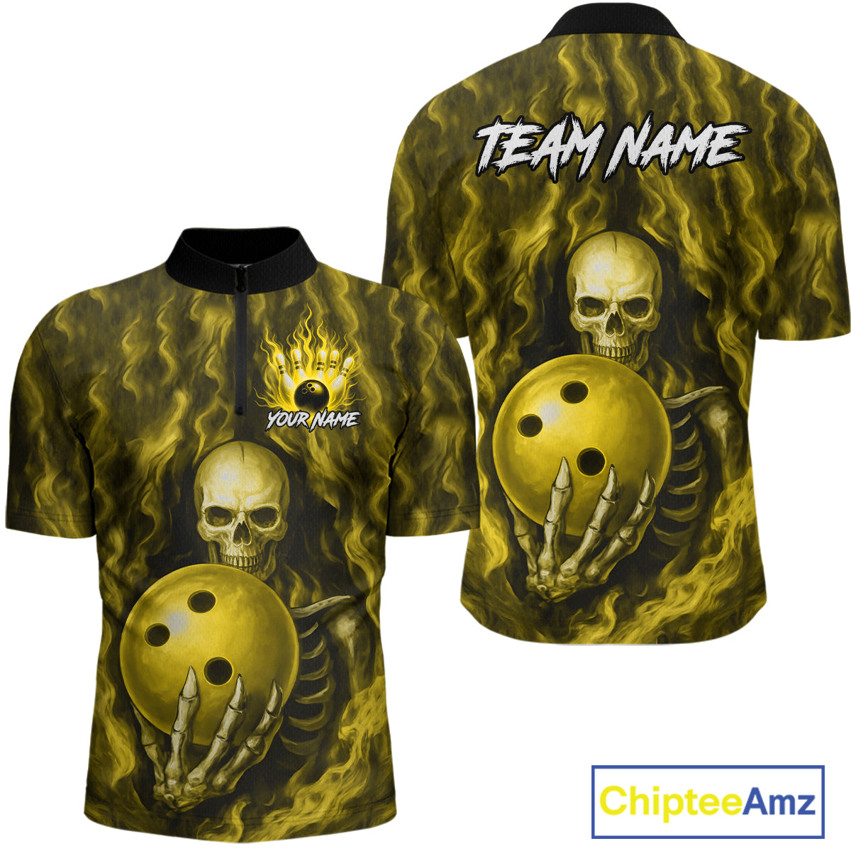 Yellow Skull Bowling Shirts for Team Men Women Custom Bowling Jerseys for Bowlers MBL206